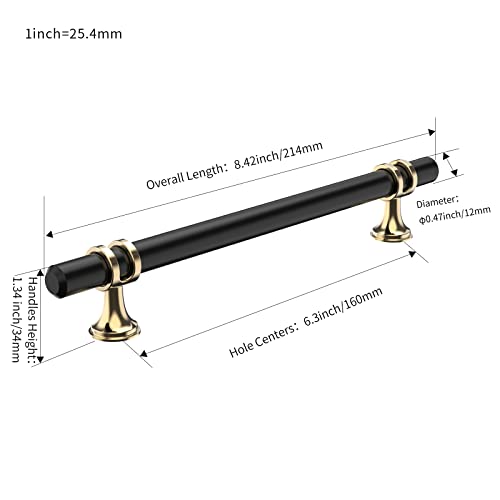 FURNIWARE Pack of 10 Cabinet Handles, Hardware Drawer Pulls, Zinc Alloy + Aluminum Kitchen Cabinet Door Handles Pull, 160mm(6.3 Inch) Hole Center Gold + Black