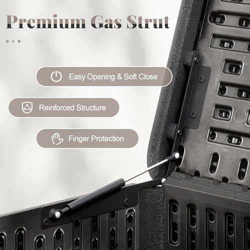 - Convenient Design: This deck box can be easily opened from the lid equipped with the hydraulic rod. Besides, the cut-out side handles provide convenience and let you experience ease of carry.