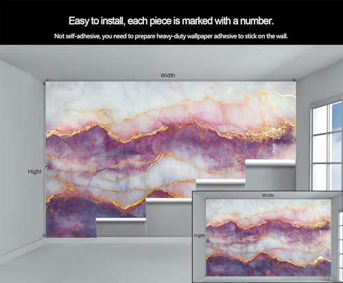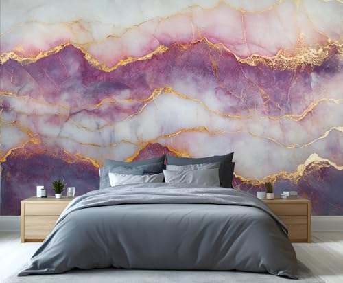 GIVLWF Purple Gold Marble Wallpaper, Nordic Marble Bedroom Wallpaper Murals, Stone Texture Wall Paper for Living Room, Not Self Adhesive Wall Paper, Painting Purple Large Mural & Room Decor