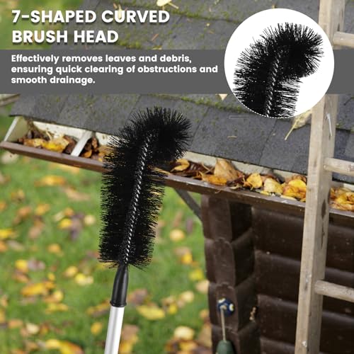- 【Curved Brush Design】This gutter cleaning brush is designed with a 7 shape curved brush head with hard bristle, which ensures easy to reach the bottom of the gutters. Effectively remove the leaves and debris, ensuring that blocked dead ends are quickly cleared and drainage is ensured to be smooth.