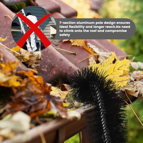 - 【Safe and Effective】This gutter cleaning brush with extended handle allows you to clean standing on the ground, without having to climb onto the roof and jeopardise safety. Regularly gutter cleaning prevents leaf debris from blocking drainage and causing roof leaks or foundation damage. This gutter cleaning brush ensures an efficient and safe cleaning experience.