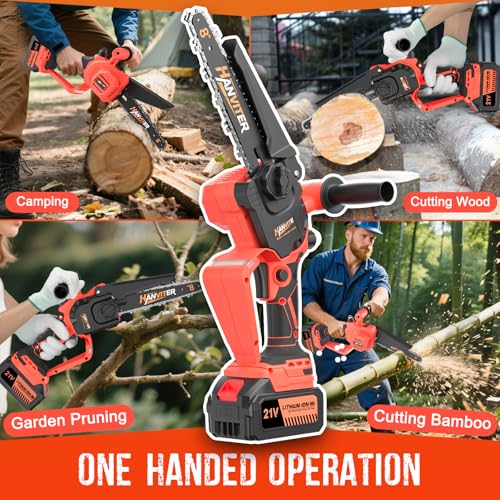 - One-Handed Use: Hanviter mini chainsaw weighing just 1.5kg and featuring an anti-slip ergonomic grip,lightweight for women, seniors & DIYers. Effortless control even on dense hardwoods.