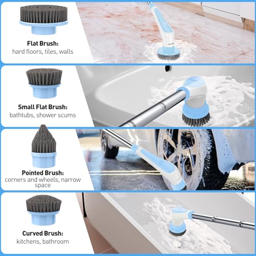 ![Homtronics Electric Spin Scrubber, [IPX8 Waterproof] Cordless Electric Cleaning Brush with 4 Replaceable Brush Heads, 120cm Adjustable Long Handle Power Scrubber for Bathroom, Tub, Floor, Pool (Blue) - Image 3](https://m.media-amazon.com/images/I/51CJY7aNT0L._SL500_.jpg)