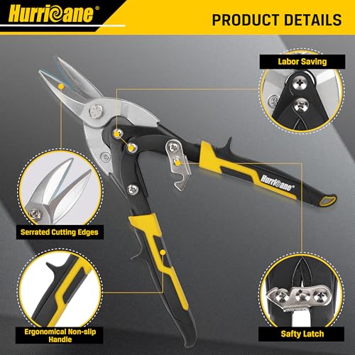 HURRICANE 10 Inch Aviation Tin Snips, Aviation Snips for Cutting Metal Sheet, Heavy Duty Sheet Metal Cutter Shear, Cr-Mo, Straight Cut, High Leverage Aviation Snip, Up to 40% Labor Saving
