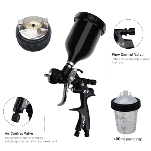 - Easy to use : Spray width of 200-270mm saves time and paint. Trigger has two positions, the first for cleaning dust and the second for spraying paint; easy triggering reduces operator fatigue.