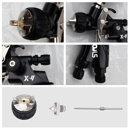 - eplacement parts for versatility: with 1.3/1.7mm spray replacement parts for clear coats and top coats, the soft, ultra-fine mist is suitable for a wide range of surfaces. Two paint cups 600ml plastic paint cup and 400ml no-rinse cup, choose the right capacity.