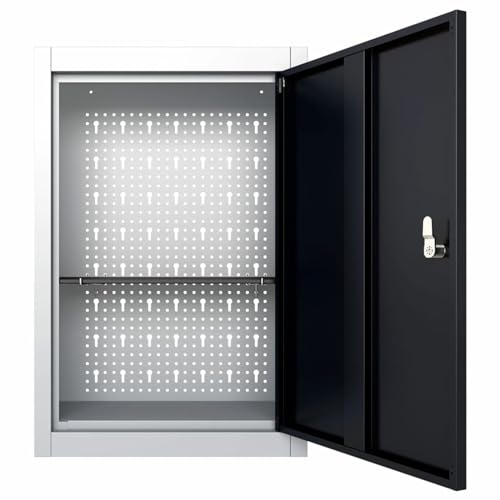 Iiaky Industrial Style Metal Grey and Black Tool Cabinet – Wall Mounted Tool Organiser with Adjustable Shelf and Lockable Door – 40 x 19 x 60 cm – Garage