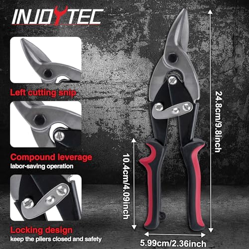 INJOYTEC Aviation Snip Left Cut Aviation Snips Left Cut Regular Tin Cutting Shears Aviation Snips with Wire Cutter Labor Saving Aviation Snips for Cutting Metal Sheet
