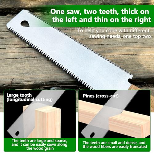 - 【Dual-Edge Blade for Versatile Cuts】The hand saw designed with a double-sided blade featuring coarse teeth for fast rip cuts and fine teeth for clean crosscuts. Perfect for cutting both along and across the grain, and compatible with materials such as wood, PVC, and ABS plastic