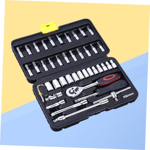 jojofuny 46pcs Ratchet Wrench Combination Set Vanadium Steel Auto Repair Mechanics Tools with Sockets for Car Maintenance and DIY Repair Random Color