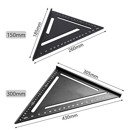 JTRHD Measuring Layout Tool Wood working Aluminum Alloy Triangle Ruler Wide Bottom Thickened Square Triangle Plate for Carpenter Engineer Craftsmen (Color : Black, Size : 300MM)