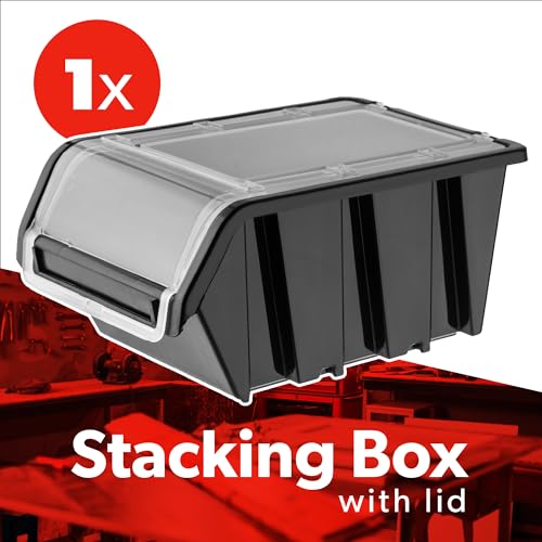 KADAX Stacking Boxes, Plastic Tool Organiser with Lids, Durable Storage Containers for Screws, Workshop Display Bins (Black, 1 Piece, 230 x 160 mm)