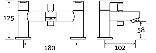 - SIZE & PRESSURE: Height: 125mm Width: 180mm Spout Height: 58mm Spout Projection: 102mm. Recommended minimum pressure: 0.5 Bar
