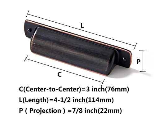Khtumeware 10 Pack 3" Drawer Pulls Oil Rubbed Bronze Cabinet Cup Handles Kitchen Hardware Drawer Handles Knobs 3 inch Hole Centre