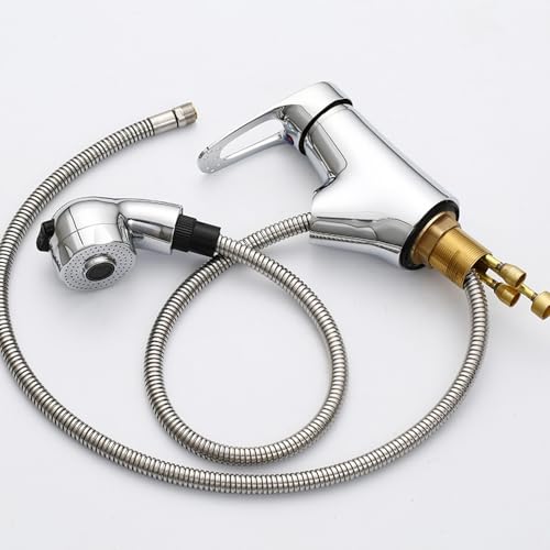 Kitchen Sink Mixer Tap with Pull Out Spray Head Caravan Monobloc Campervan Bathroom Brass Pull Down Tap with Sprayer Camping Sink Tap for RV Marine Boats Campers Motorhomes Travel Trailers Chrome