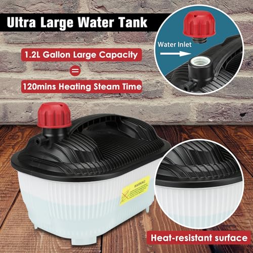- 【Long Running Time and Easy Operation】 1.2 Gallon water tank heats up in approximately 20 minutes and offers up to 2 hours of usage time on a full tank, sufficient time to clear your mold wallpaper. And this steamer reaches up to 212°F (100°C), The short 2-minutes refilling and removing process provide great conveniences.