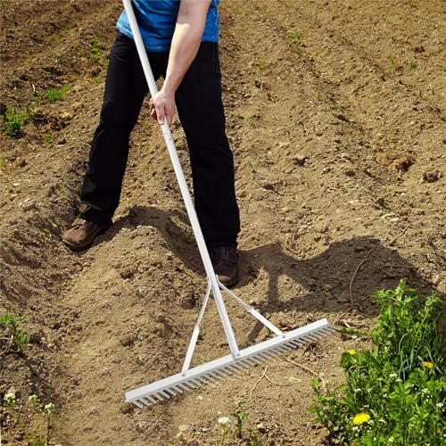 - Lightweight & Durable tructure: Constructed with non-deformable aluminum, the soil rake boasts unrivaled lightweight and rustproof properties, ensuring long durability and utmost convenience during use. Moreover, the triangle frame will further improve overall sturdiness.