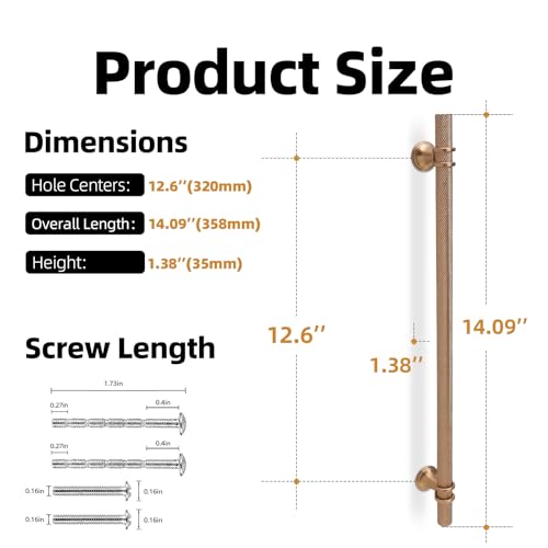 - 【PACKAGE INCLUDES】6 pacs 12-5/8 inches Champagne Bronze cabinet pulls, each individually wrapped to prevent scratches, also comes with two lengths (1 inch and 1.73 inch) screws removable