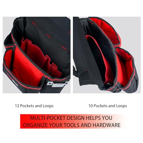• 【Function】When you are carrying heavy tools on your waist.This is when you need a frame tool belt that can help you distribute the weight evenly to reduce stress.Fully detachable tool rig,including tool belt,2 large tool pouches,hammer holder and belt.Multi-pocket design holds all the tools you need.Combined carpenter tool belt set is easy to add and remove