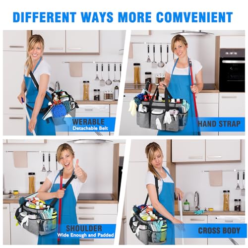 - DETACHABLE SHOULDER & WAIST STRAP:This cleaning storage bag comes with detachable and adjustable shoulder and waist straps for easy removal and super comfortable and stylish wear. It also has a comfortable handle, and its unique design offers 3-in-1 functionality: hand-carry, shoulder strap, and waist belt, making it more convenient, practical, and safe to wear while working.
