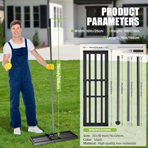 - 【Effcient Lawn Leveling】- The lawn levelling rake is made of high quality stainless steel, which is rust-proof, strong, corrosion-resistant and provides a longer tool life. The chassis of this lawn leveler measures 76cm x 25cm, which can easily and efficiently levels land and lawns, keeping your lawn nice and flat and saving you time and energy.