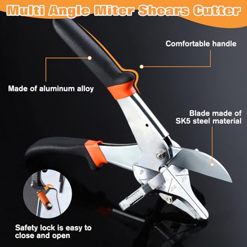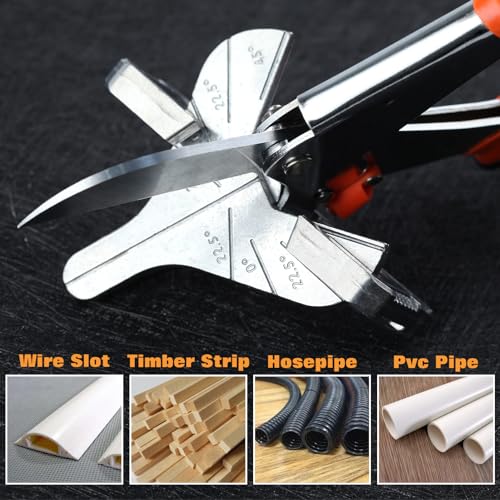 - Application: Multi angle miter shear cutter perfectly cut trim and other materials at 22.5, 45 degree angles to create clean joints. Suitable for wire slot, timber strip, hosepipe, PVC pipe and other light materials at quick cutting. It’s a great helper as a scissor tool using indoors and outdoors, easy to carry.