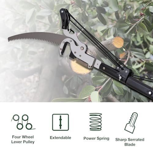 - Detachable curved pruning saw blade, Rope-operated cutting blade.