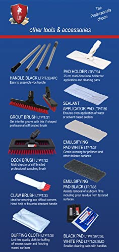 - ✅ LTP Cleaning Pack 2 – Smooth and honed stone and tile surfaces consists of Sturdy 4Piece Pole, White Pad Holder White 25cm Multi-directional holder for application, White and Black Emulsifying Pads for deep cleaning.