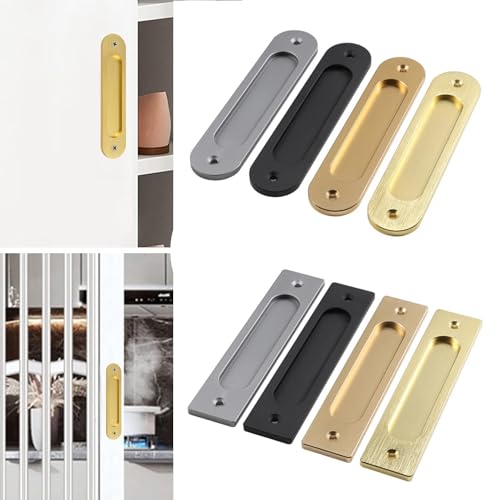 - Recessed Sliding Door Handle This contemporary style recessed door handle is crafted from aluminium alloy, featuring an electroplated surface that is pleasant to the touch and resistant to rust and corrosion.