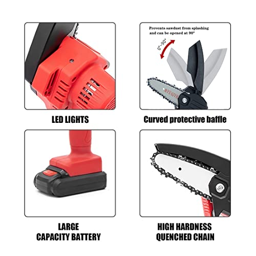 - 【Powerful Dynamic System】Mini cordless Chainsaw adapt high-quality guide chain which has undergone a deep quenching process ensures smooth cutting.The electric chain saw is equipped with a pure copper motor to provide strong power, the wooden teeth design can make the chain saw stuck on the branches, cutting more efficiently and faster.