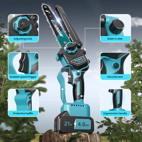 - Fine 6 Inch Mini Chainsaw: Brushless mini chainsaw cordless, compact and lightweight body,comfortable to hold, can be operated with one hand, not easy to fatigue in long term use, suitable for ladies, elderly and beginners;it can easily trim branches or vines, clean shrubs, cut wood, bamboo, or polyethylene pipes,say goodbye to bulky, old, poorly performing chainsaws.