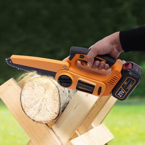 Mini Chainsaw Cordless, 21V Electric Chainsaw with 4000mAh Lithium Battery and Brushless Motor, 16cm Cutting Diameter for Garden Pruning and Woodcutting, One-Handed Operation