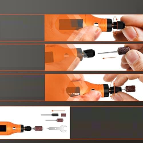 - 【5-Speed Settings】: Mini cordless rotary tool has 5-speed adjustments (3000 6000 9000 12000 15000RPM) for easier speed control and to meet the power demands of different tasks. Allows for safe and careful sanding in stages, even for beginners who can easily control the speed. Your creations are always with this rotary tool.