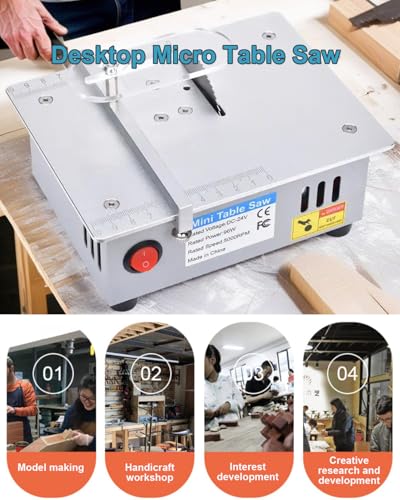 • Equipped with an accurate scale and a 45° bevel ruler, this mini desktop table saw enables effortless and precise cuts, simplifying the execution of complex designs.