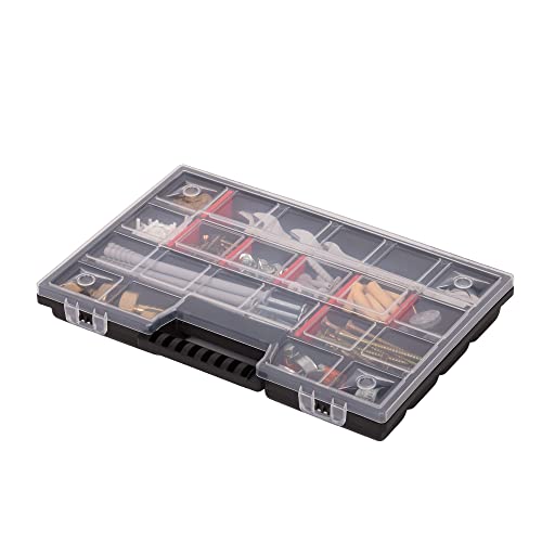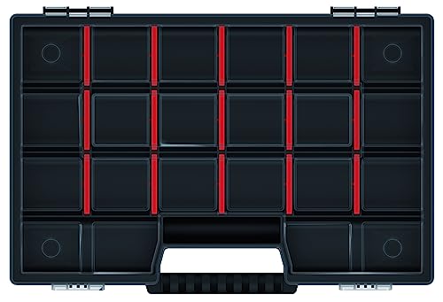 • UNIVERSAL USE: The storage box with 21 adjustable compartments is ideal for storing, sorting and organizing small items and accessories in the workshop or garage such as screws, nuts, pins, nails, connectors, rivets. The storage box also offers space for hand tools, such as screwdrivers, drills, markers