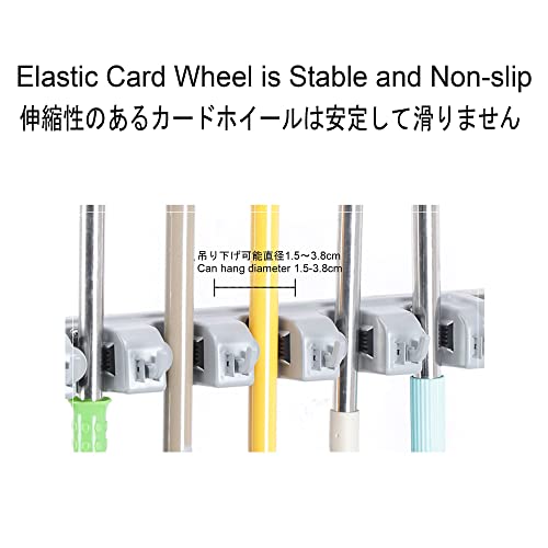 • 2,Utility Racks: Mop rack slot is no-slip:This slots is no-slip elastic card wheel, use ABS material non-slip clip, easy to push and pull to take out, non-slip rubber buckle, stable and not slipping, and it can use to storage and organize mops, brooms, rakes, dustpans, shovels,etc.