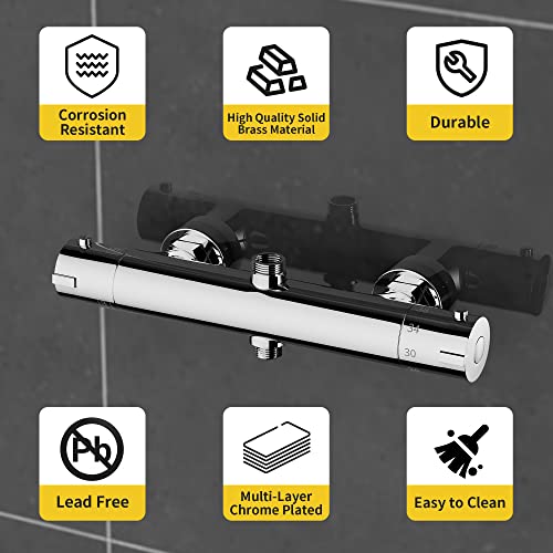 • 【High Quality Material】The thermostatic shower mixer bar is made of premium solid brass and multi-layer chrome plated which is corrosion-resistant and moisture-proof, durable and easy to clean.