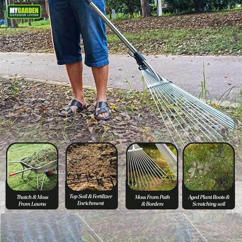 - 𝗔𝗱𝗷𝘂𝘀𝘁𝗮𝗯𝗹𝗲 & 𝗘𝘅𝗽𝗮𝗻𝗱𝗮𝗯𝗹𝗲 𝗗𝗲𝘀𝗶𝗴𝗻: Easily adjust the telescopic handle and expandable rake head to suit various gardening and lawn cleaning tasks. Perfect for reaching tight spaces or covering larger areas quickly and efficiently without strain.