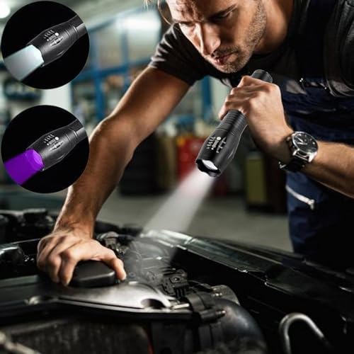- Two-Color light Source: Crafted with a two-color light source design, this UV flashlight provides a versatile lamp for multiple uses, catering to diverse situations by providing both UV light and white light, making it the excellent tool to meet your needs