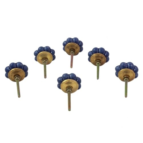 NOVICA Artisan Handmade Ceramic Cabinet Knobs Floral Blue from India Metal Decor Accessories Decorative Hardware 'Flower Harmony in Blue'