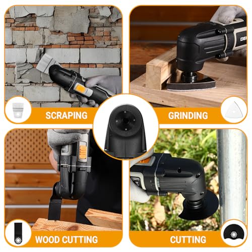 • Precision Control with Variable Speeds: Featuring 6 variable speed settings between 3000-22000RPM, this multi tool provides excellent efficiency and control for different tasks. Use higher speeds for sawing and sanding stone, and lower speeds for cutting metal and polishing smooth surfaces. The 3° swing angle design enhances efficiency, making this oscillating tools perfect for detailed and precise work.