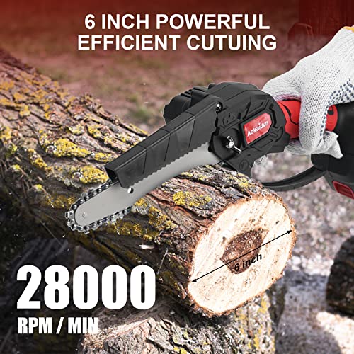 Panana Aokaidun Mini Chainsaw 6 Inch Cordless Electric Chainsaw with 2 Battery and Charger Security Lock Quick Charge Handheld Small Chain Saw for Wood Cutting Tree Trimming Gardening