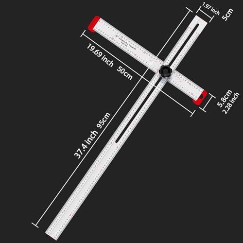 - 【Multi Angle Measuring Ruler】: Adjustable Aluminum Alloy T Square Ruler with an adjustable knob locks securely to allow angled measurements, angle markings 30, 45, 60, 75 degree when measuring