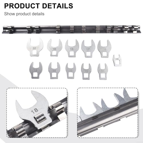 - 【Flexible and Convenient】This 11-piece wrench set features crow foot open end wrench keys ranging from 10mm to 22mm, providing versatility for various fastening needs. The compact size allows for easy access to fasteners in tight spaces where other wrenches may not reach. Compatible with any 3/8-inch drive ratchet, ex, or torque wrench, offering flexibility in tool selection.