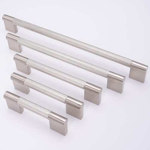 POVEFONK 6 Pack 15 inch(384mm) Brushed Satin Nickel Kitchen Cabinet Handles Knurled Cabinet Pulls Drawer Pulls Kitchen Hardware