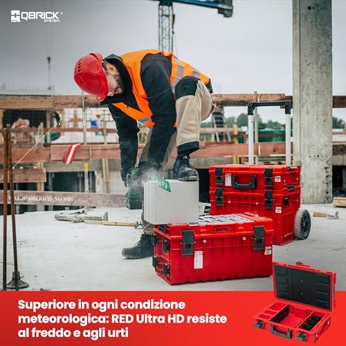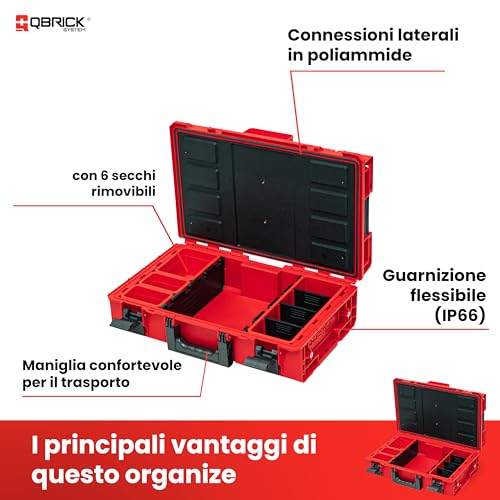 Qbrick – System ONE 200 2.0 Profi RED Ultra HD – Empty Tool Box – Organiser Storage for Tools Set and Accessories with 8 Buckets in Different Sizes, IP66 Certification and More