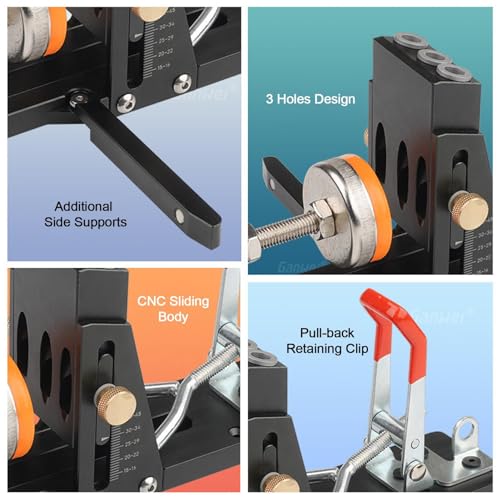 - ⋬Upgraded design: Thanks to the 2 support rods of our pocket hole jig kit, you can continuously drill the same side with stable results. The upgraded design ensures maximum stability during drilling