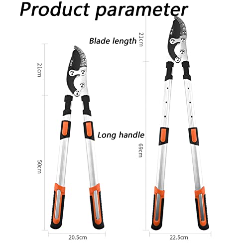 - High-strength garden shears: Press the adjustable length 610-900mm (24.5"-31.5") to safely trim tall branches. The high-carbon steel blade cuts all the way to the tip to produce a smooth and clear cut.