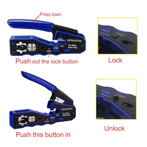 - ✅RJ45 Crimp Tool for Pass through RJ45 cat5e cat6 cat6a connectors,work with 26awg ~23awg cable.