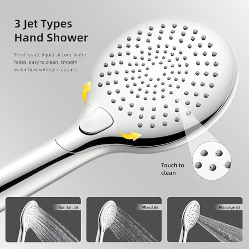 - Premium Chrome Shower System: Chrome finishes on the rainfall shower head and handheld unit elevate your bathroom; the scratch-resistant coating suits modern decoration art and the reinforced shower riser rail ensures stable daily use